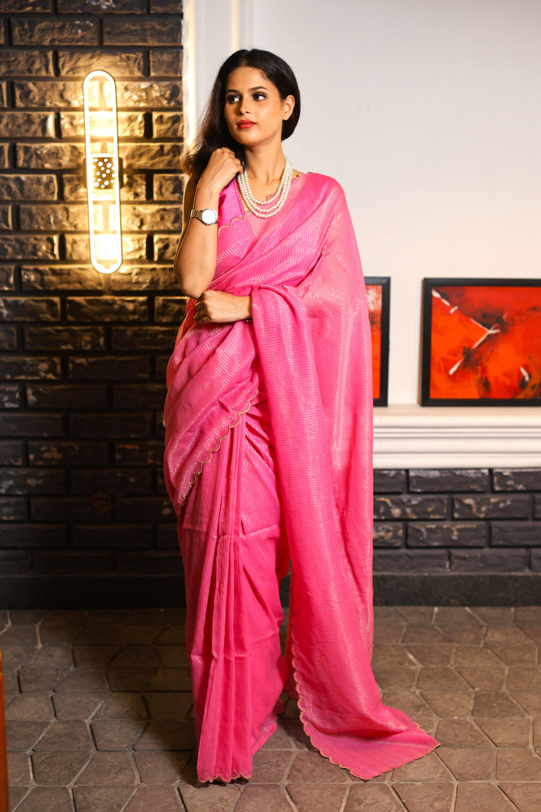 Bring a burst of charm to your wardrobe with the Inira Pink handwoven tissue saree....