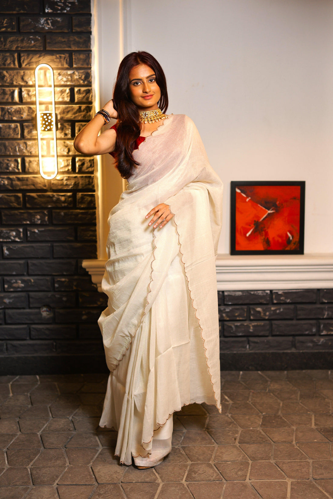 "Shyla" Off-white Saree handloom Cotton with Tissue weave