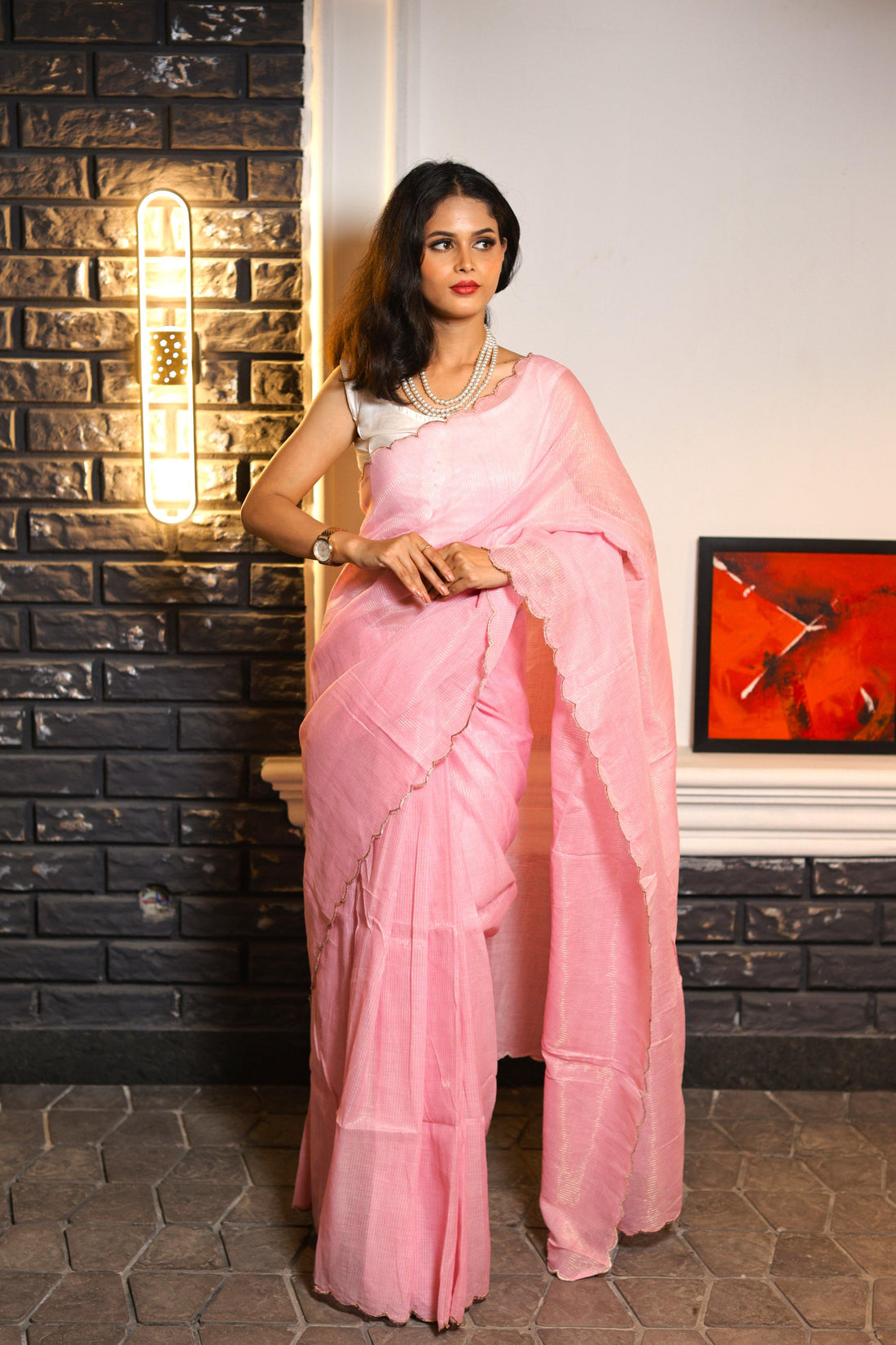 Elevate your style with the “Kalyani” Bless Pink Saree, beautifully crafted in handloom Mul cotton...