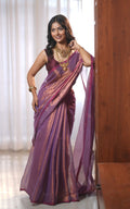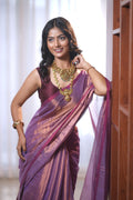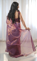 Amba | Metallic Pink handwoven tissue saree with solid Border