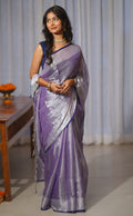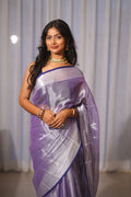 Chhaya | Metallic Blue handwoven tissue saree with Temple Border