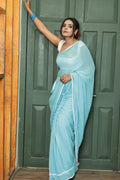 The "LILAC" Mul cotton saree in Aqua Blue is a perfect blend of comfort and elegance. Crafted from soft, breathable Mul cotton, this saree offers all-day wearability while exuding a graceful charm. The delicate white flower lace border adds a refined, timeless touch, enhancing its beauty. Ideal for both casual and festive occasions, the Aqua Blue hue adds a refreshing and vibrant feel to your traditional wardrobe. Elevate your style with the "LILAC" saree, combining modern sophistication with traditional appeal in every drape.