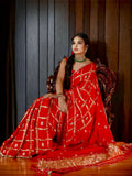 Add royal charm to your collection with this stunning Red Pure Gaji Silk Saree, beautifully designed in traditional Bandhej style and detailed Gotapatti work. The rich Gaji silk fabric offers a soft, shiny finish with a graceful drape, perfect for weddings, festivals, or special occasions. The saree comes with a matching blouse, making it a complete ethnic outfit. Its vibrant red color and hand-done Bandhej prints give it a classic, festive look. A perfect blend of tradition, comfort, and elegance that never goes out of style.