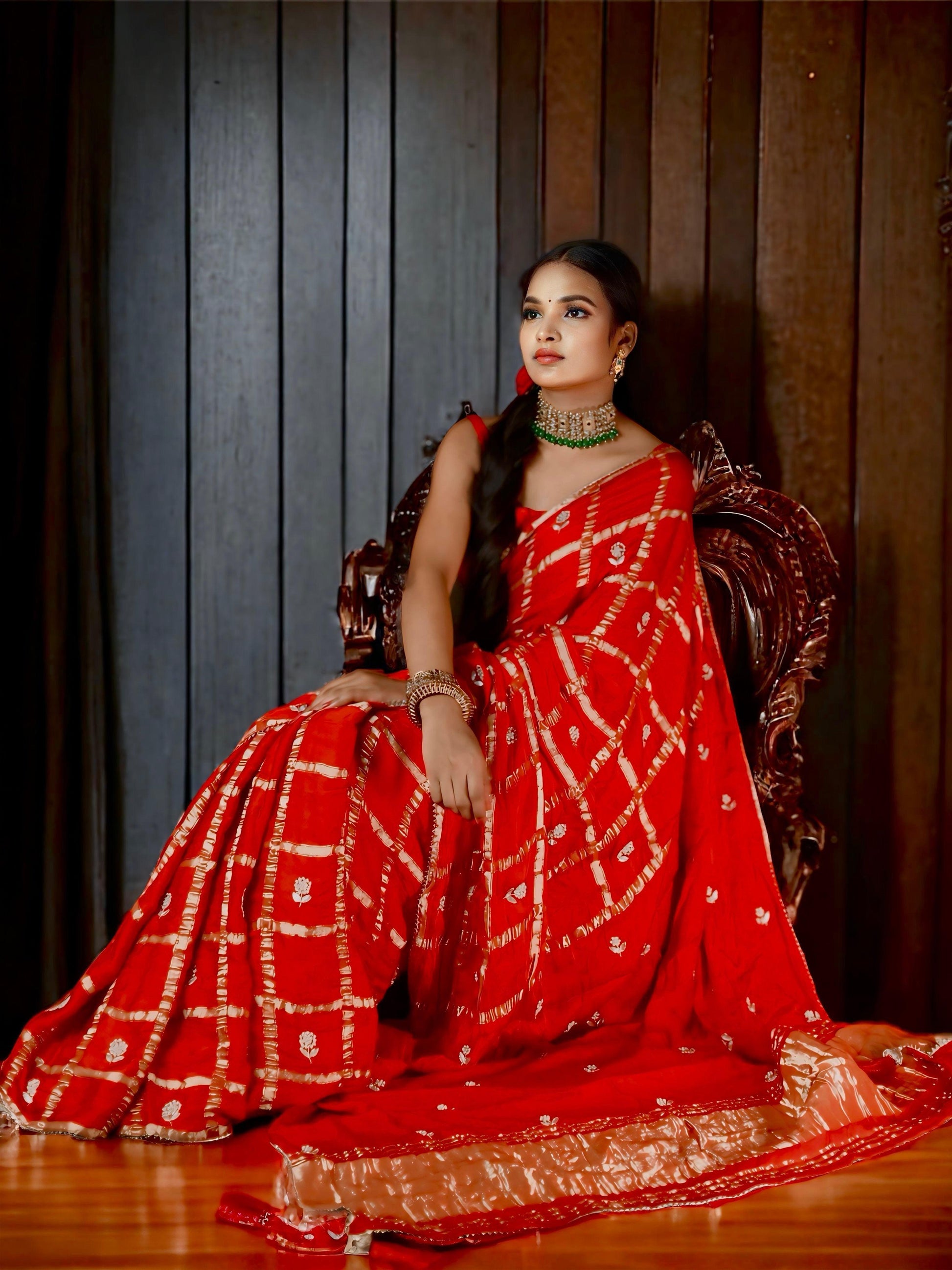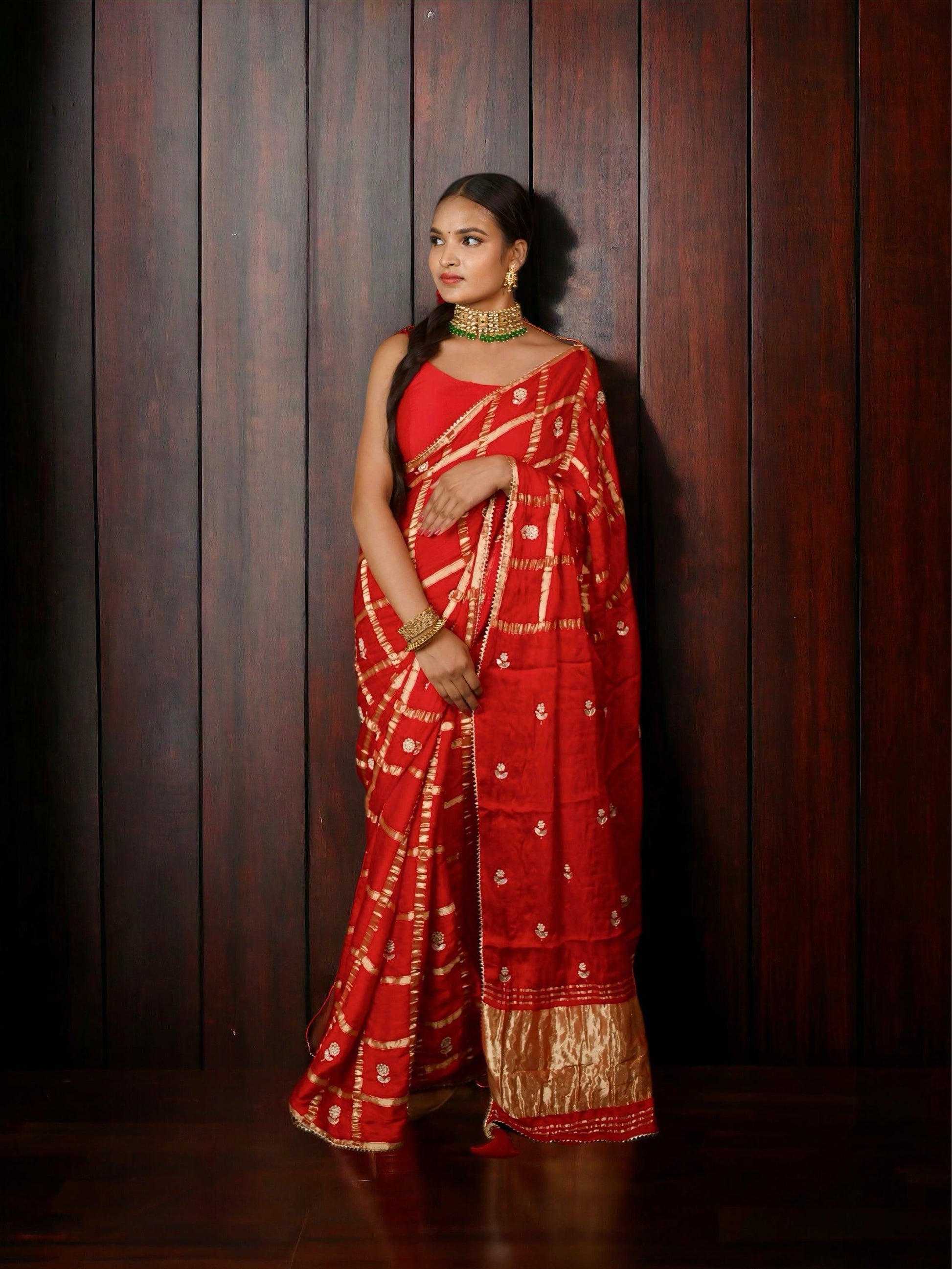 Red Pure Gaji Silk Ghatchola Gotapatti Work Saree