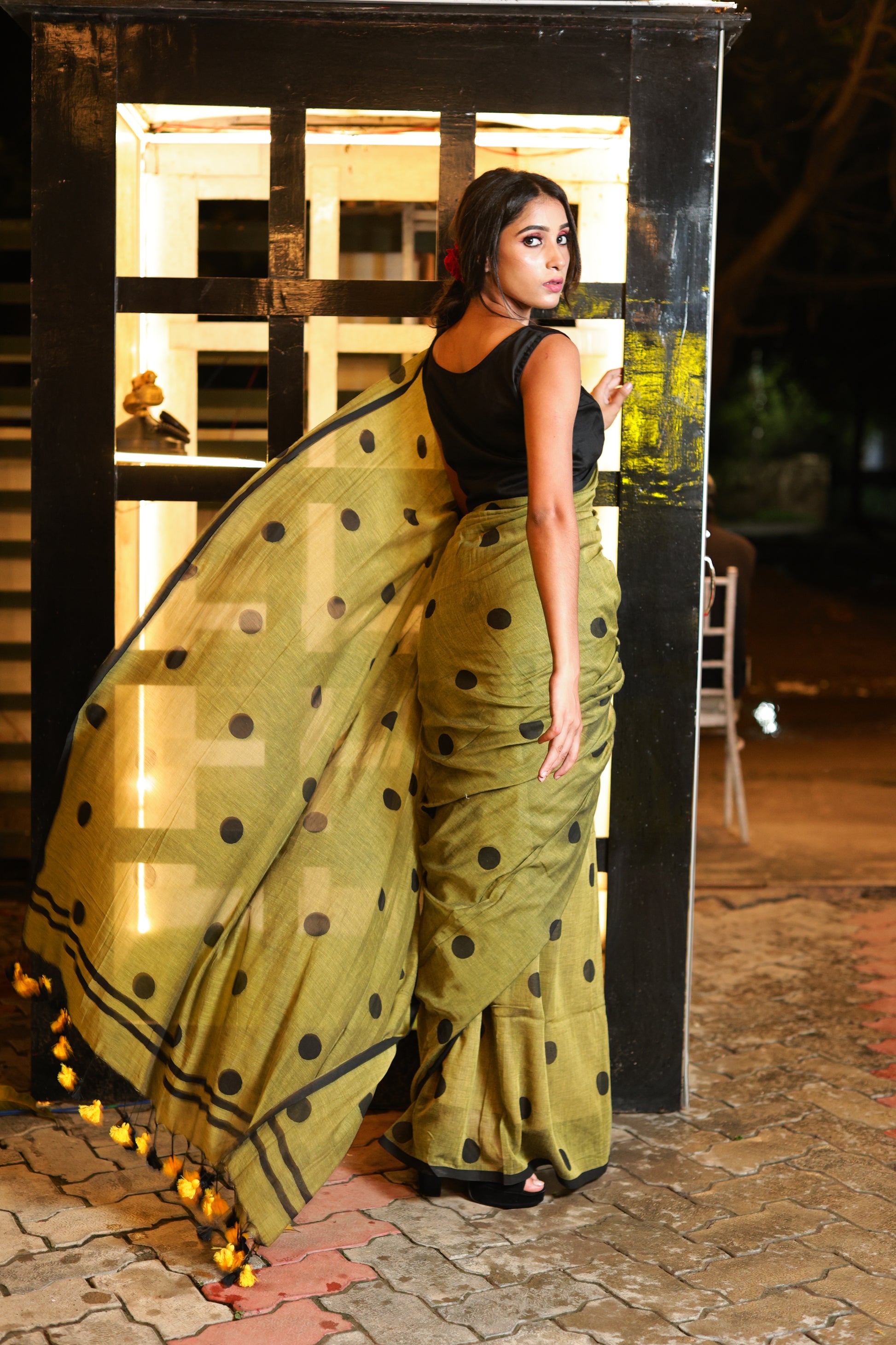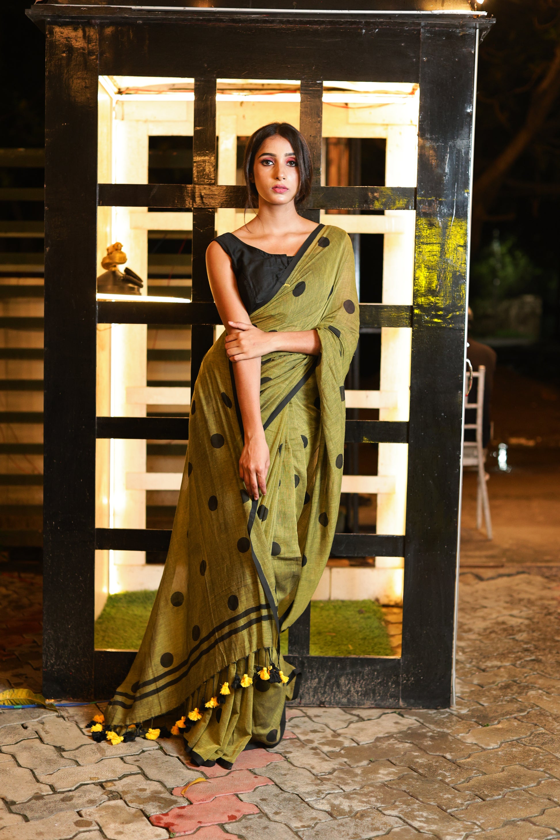 Add elegance to your wardrobe with our "Ruhi" saree, crafted from soft and airy Mul cotton. Designed to offer both comfort and style, this saree features a timeless White-Black and Green-Black polka dot print that suits any occasion. Whether it's a casual day out or a festive event, the graceful colors and lightweight fabric make it an easy favorite. Stay effortlessly stylish and comfortable all day long.